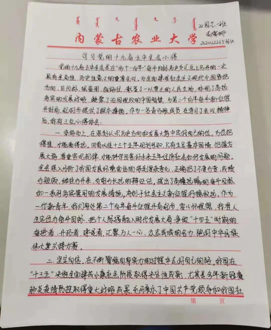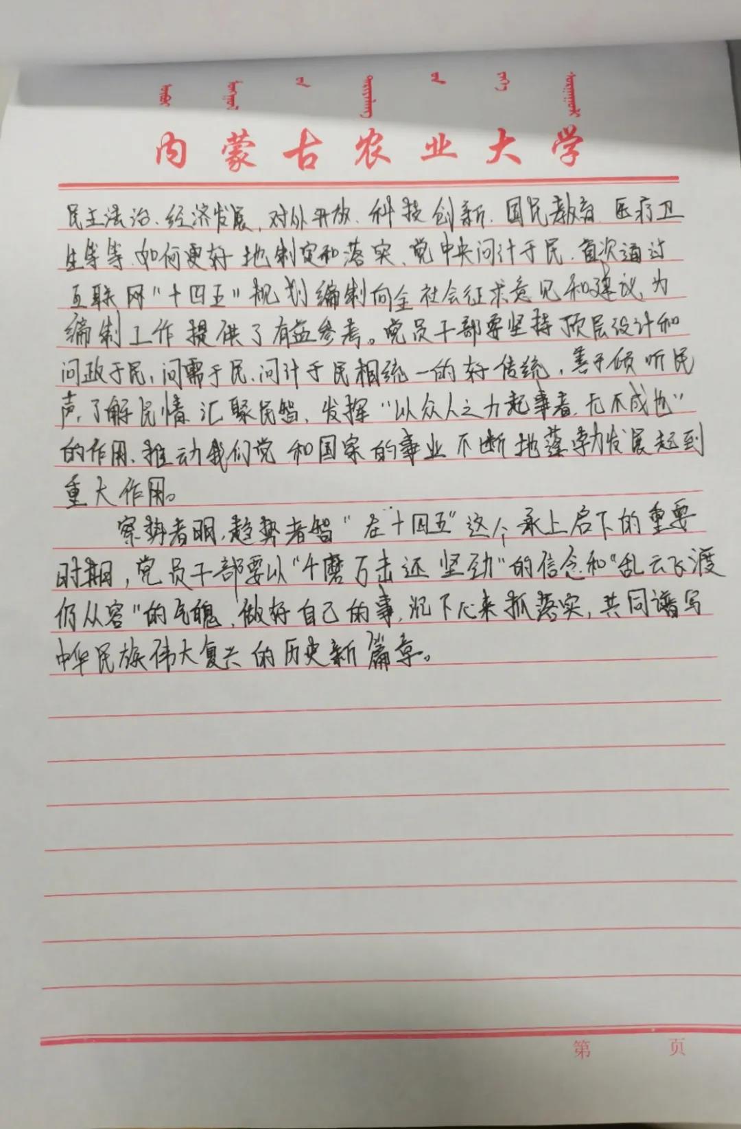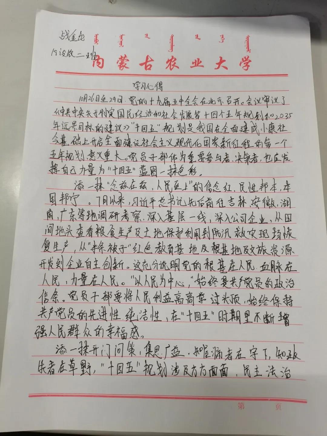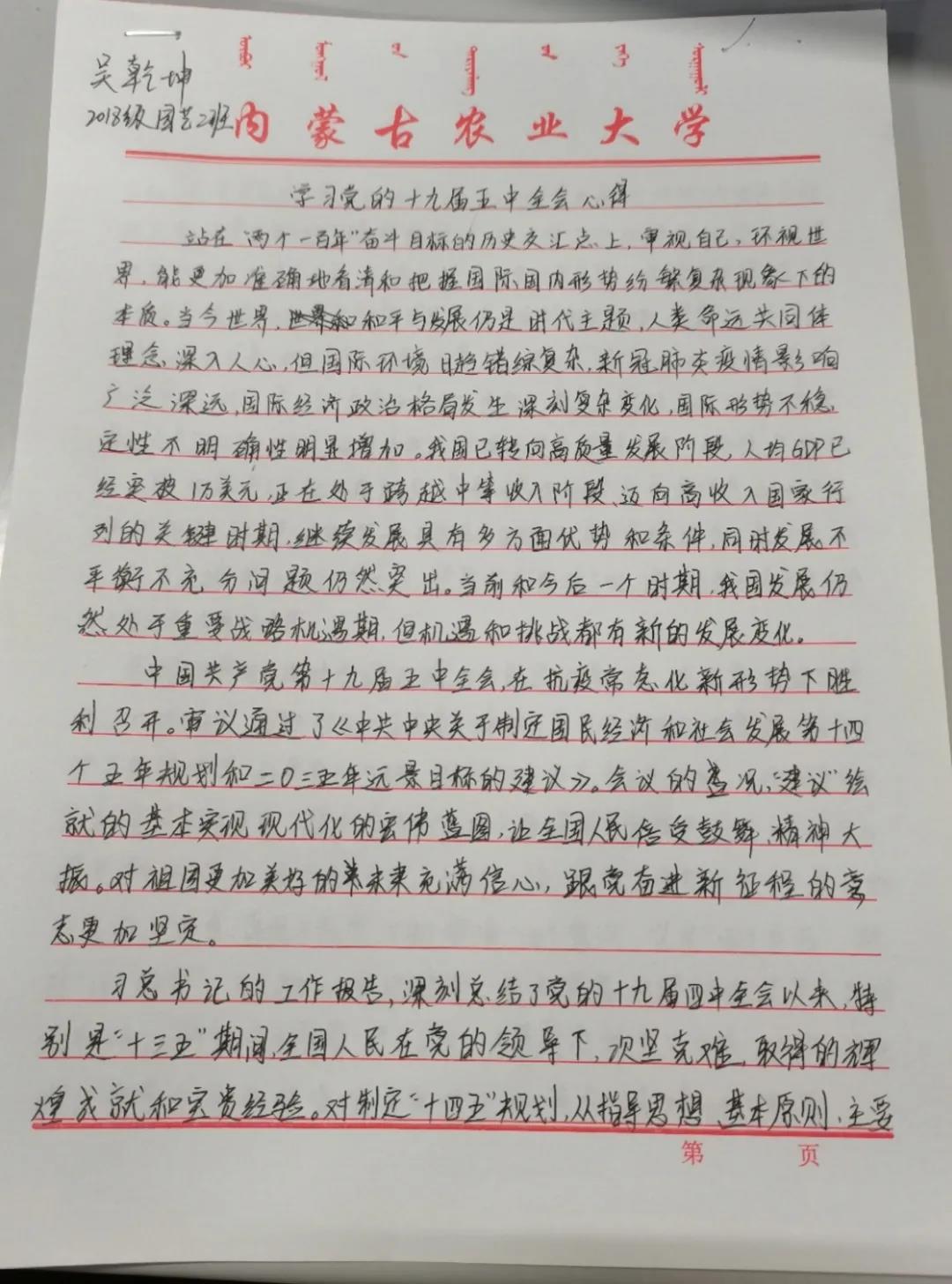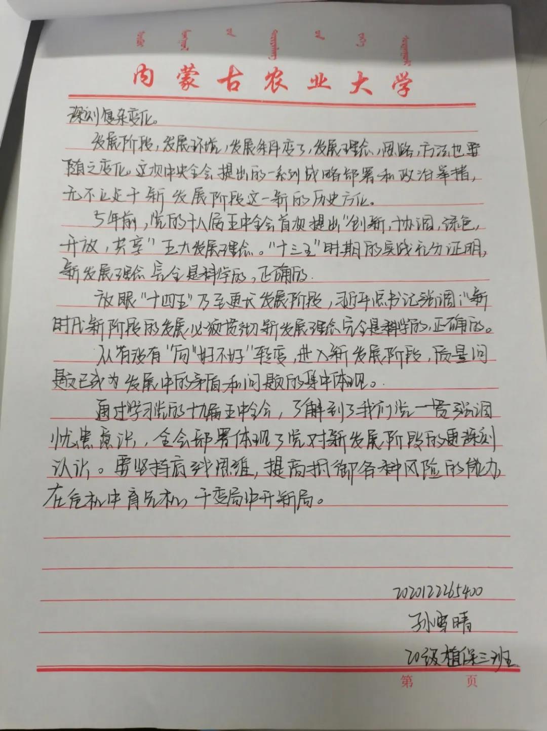 在讨论课中,同学们共同观看了党的十九届五中全会会议视频,深刻认识到不奋斗无未来的人生感悟,在未来的路上,要乘势而上、坚定自信、担当实干,在深刻认识历史方向和发展趋势中找到自己的定位。接着,同学们开始分组讨论并写下或分享自己的感悟。同学们纷纷表示:站在新的历史起点上,我们党已经在第一个百年团结带领人民书写了伟大奇迹,也必将在未来团结带领人民创造新的更大奇迹,只有以习近平新时代中国特色社会主义思想为指导,全面准确把握和深入宣讲全会精神,增强“四个意识”、坚定“四个自信”、做到“两个维护”,才能更好的接过接力棒。