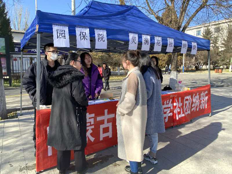 11月8日,经过一番精心的准备,“灵澜花社”纳新活动正式在东区丁香餐厅前广场开始。18级韩龙同学简单地将此次活动任务进行了分工并将宣传技巧传授给同学们。两位同学负责登记信息和扫码入群,其余同学在周围的路口进行宣传。在社团部同学的介绍下,来往的同学了解到学习插花艺术不仅可以激发学生探究欲望、兴趣以及培养对插花艺术想象灵感意识。同时可以很好地将花卉学专业知识运用到实践中。经过一天的积极宣传后,“灵澜花社”注入了一大批新鲜血液。
