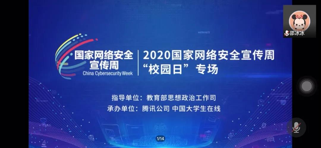 教师与学生代表于9月16日晚共同参加“聚力青春 守护安全”网络安全直播课活动。本次活动由电影天堂部员张婷主持。