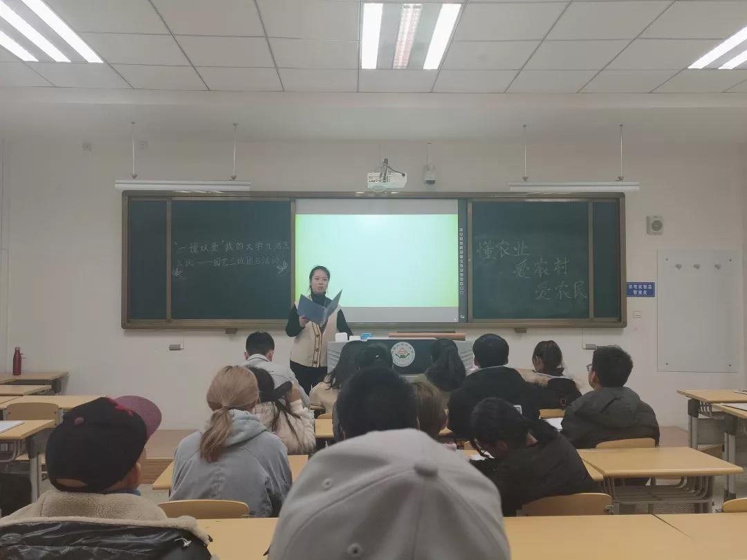 11月21日下午,19级园艺三班全体成员在南教208参加了“一懂双爱——我的大学怎么读”主题团日活动。