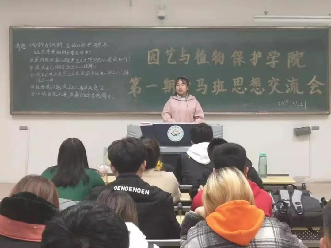 于南教111教室组织第一期青马班学员开展“学习青马精神、做一懂双爱学农人”座谈交流会,学生会办公室副部长石嘉靖主持本次活动。