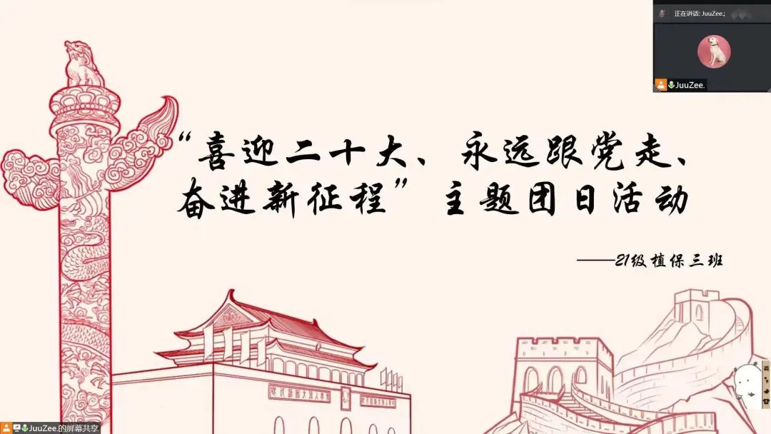 以"喜迎二十大、永远跟党走、奋进新征程"为主题,结合假期社会实践的活动内容,各团支部先后在线上开展了主题团日活动。
