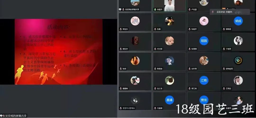本次活动中,每一个团支部紧密结合“喜迎二十大、永远跟党走、奋进新征程”这一主题,同学们不仅学习了关于党、团理论知识,也在线分享了各自参与社会实践感悟。凡走过,必留下痕迹;凡记过,必烙印心头。同学们纷纷表示要不断提升理论水平,向榜样人物学习,以奋发有为的精神,牢记党的使命,跟随党的领导,紧跟时代的召唤,以良好的姿态迎接党的二十大召开和建团100周年。