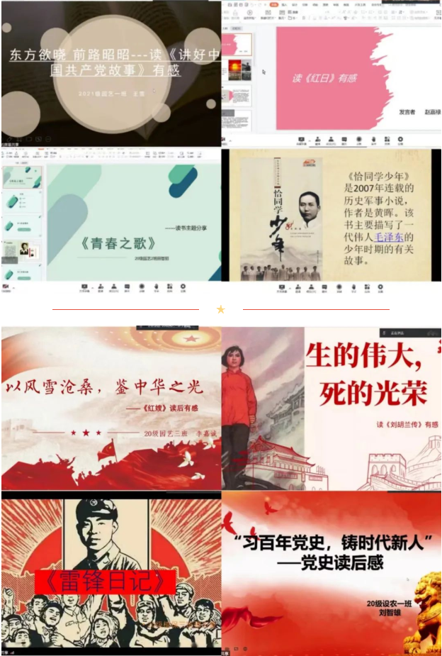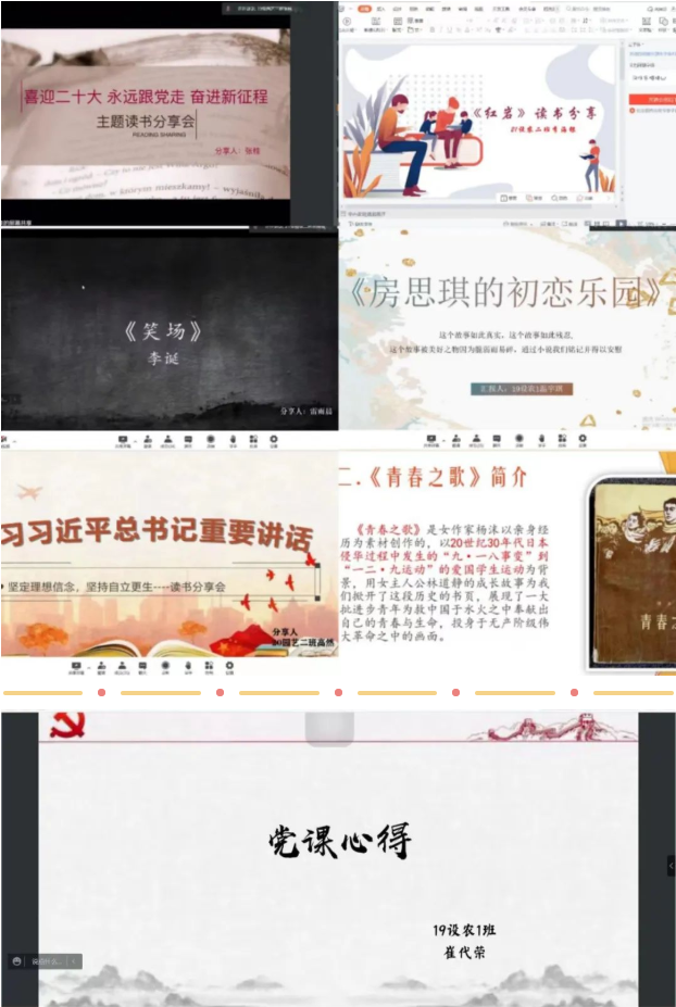 分享会上,各位参赛选手讲述了自己喜欢书籍。期间,李嘉诚同学分享的《红嫂》,让同学们感受到了沂蒙山区母性群体的伟大,以及在革命事业中做出的巨大贡献;张芷若同学分享的《梁家河》,使大家深刻感悟到,梁家河的七年知青岁月磨练了总书记的意志,锻炼了他的才干,也成为了其人生中重要的转折点;张桂同学分享的《傅雷家书》,通过傅雷写给两个⼉⼦的信,参透了⼀种伟⼤的、理智的⽗爱。分享结束后,郝老师做出总结,希望同学们在今后的学习和生活中,养成一个阅读的良好习惯,真正用知识武装头脑,不辜负习总书记对广大青年的殷切期望。