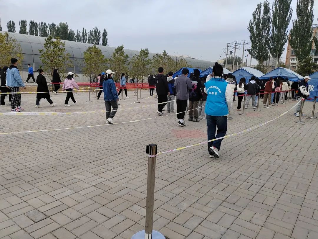 志愿者们积极投身于各项防疫工作中,在核酸检测时,志愿者们坚守岗位,提醒同学们时刻保持1米间隔,正确规范佩戴口罩,确保大家有序参检。