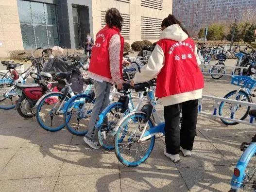 下午的校园清洁主要包含摆放校内违规停放的共享单车和清理新区生科楼附近的垃圾。在社服部同学简单分配工作任务后,同学们开始热火朝天的干起来,没一会儿杂乱的停车场变得整齐,不仅美化了校园环境,也增加了同学们的便利程度。清理校园垃圾的志愿者们不怕辛苦,边走边清理草丛中的烟头、墙角边的塑料、垃圾桶外溢出的垃圾等,看着自己的劳动成果,大家心里都美滋滋的。