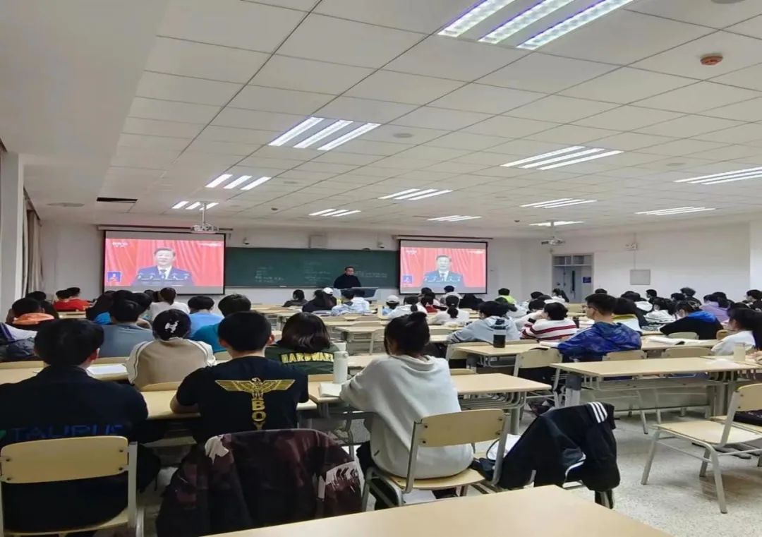 2022级学生于南教625、626教室集体观看党的二十大开幕会。