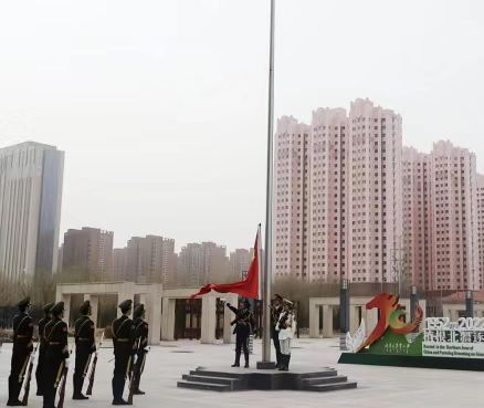 国旗护卫队旗手们英姿飒爽,迈着铿锵有力的步伐走向旗台,他们身着国旗护卫队礼服,队列整齐、口号响亮。全体师生庄严肃立,齐唱国歌,鲜红的五星红旗冉冉升起,迎风飘扬。