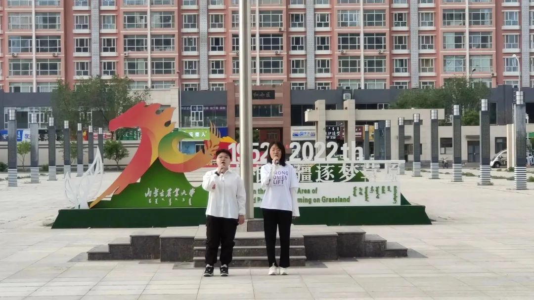 艺术团姚乐怡、王晨雪领唱下,师生齐唱《歌唱祖国》,大家跟着音乐的节奏,用歌声向祖国表达着最诚挚的祝福