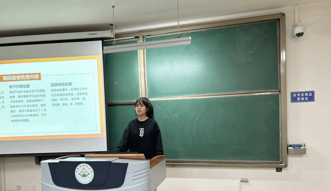 接着,舍风建设中心副主任扈广明作为男生宿舍长代表分享了宿舍管理、处理宿舍人际关系等方面的经验。21级刘钰婷同学作为女生宿舍长代表发言,分享自己的宿舍长心得和管理方法,鼓励大家互相尊重,和睦相处,让宿舍成为温暖的小家。