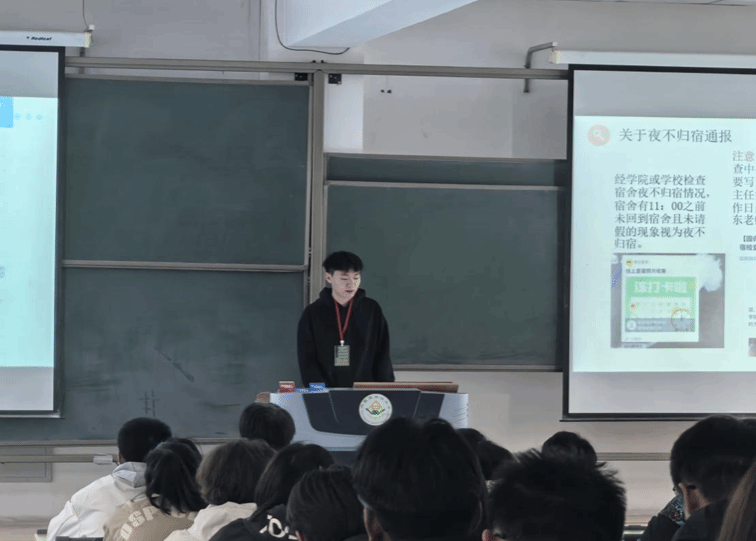 学生宿舍实际情况,深入浅出地阐述了宿舍长在宿舍建设过程中的重要性。他强调,宿舍是学校最小的组织,宿舍长是宿舍的“领头羊”,应切实肩负起维护安全与秩序、促进团结与和谐的职责。