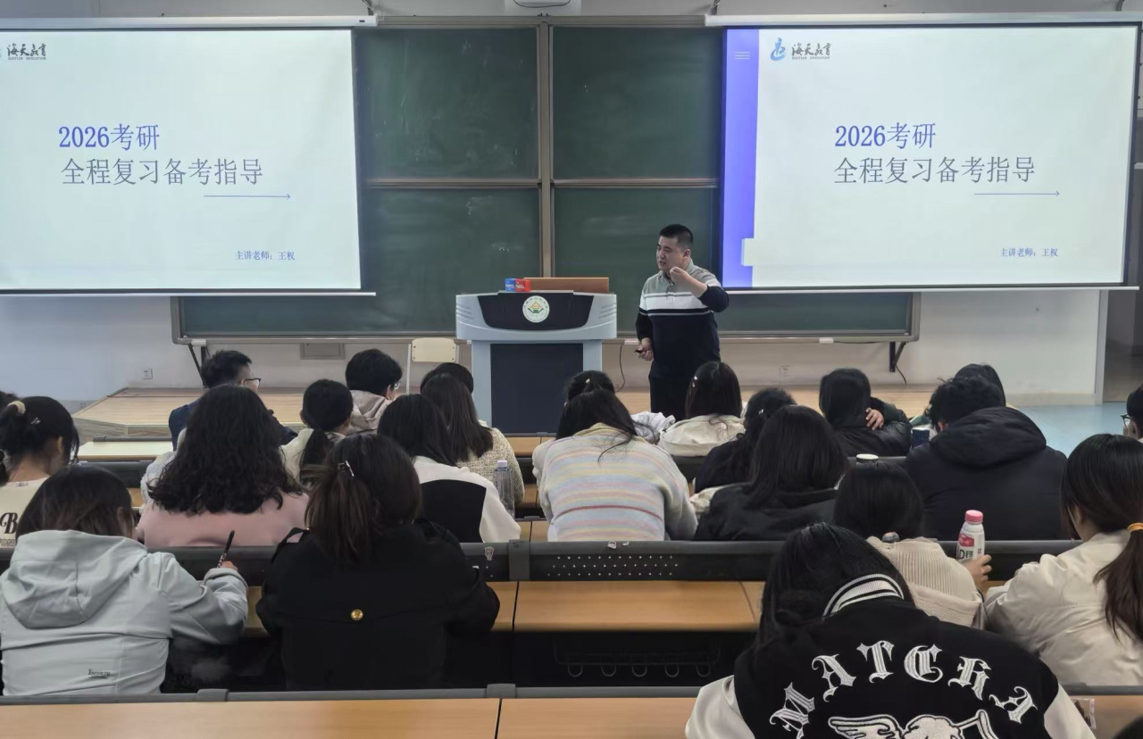 于3月25日晚在南教116教室开展2026年考研全程复习备考指导讲座。本次讲座特邀考研咨询教师王权作为主讲人。