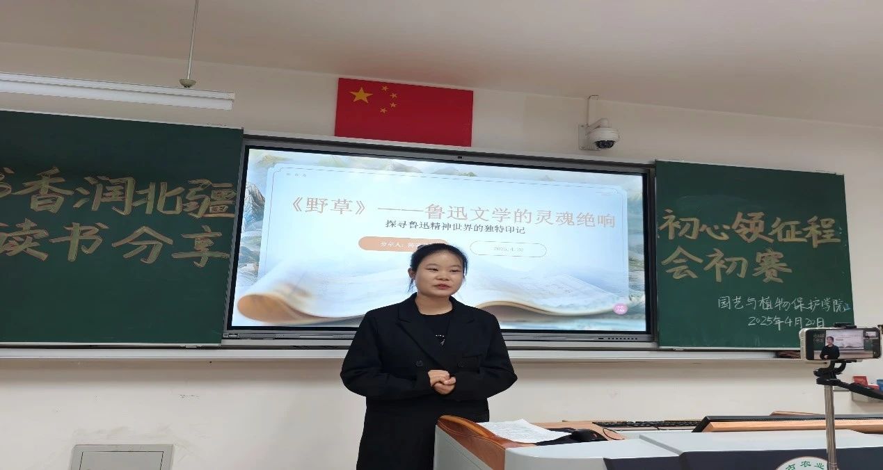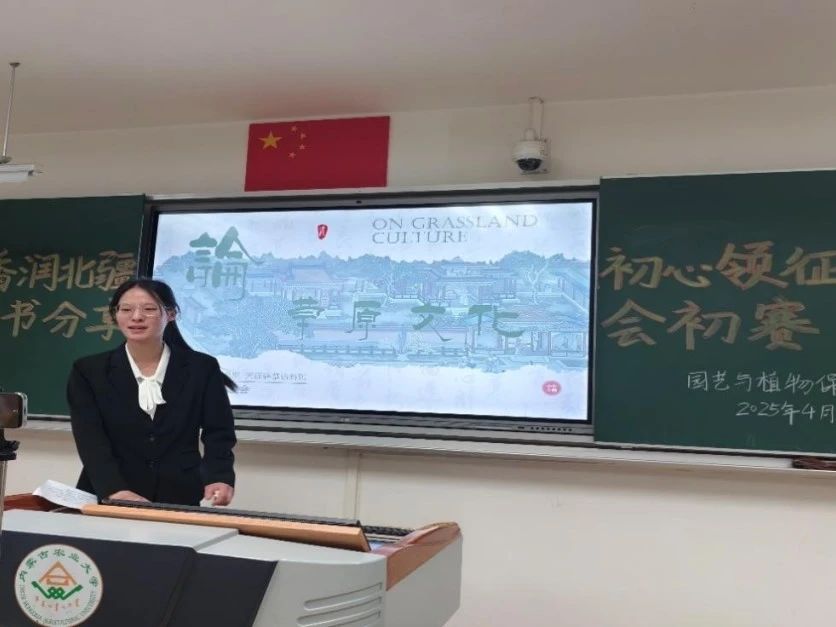 活动中,同学们对自己喜爱的书籍进行详细的分享。24级植保三班陈萌萌,24级园艺二班赵秋雨,24级园艺一班李妍柔,24级园艺一班何斐,23级园艺一班刘璟轩分别对《野草》进行解读,通过大家的讲解,展现出鲁迅对自我内心矛盾、社会黑暗的深刻剖析及对理想与希望的不懈追寻。其中陈萌萌在分享书籍时,语调抑扬顿挫,配合恰到好处的肢体动作,生动诠释书中内容,极具感染力。24级园艺一班宋思雨和24级植保三班魏恩玺分别介绍《发现内蒙古:全域到全球的新丝路》,从多维度剖析“一带一路”与内蒙古的渊源及战略机遇。24级园艺一班亢雪彬,24级植保二班王馨,24级园艺二班雷信会分别分享了《论草原文化》,剖析多种文化形态,兼具传统与现代特色的草原文化,了解文化多样性的重要性。其中王馨同学伴着舒缓的蒙古轻音乐解读草原文化,音乐仿佛让听众身临广袤的大草原一般。24级园艺一班苏政闻和22级植保一班李羽菲依次解读《国史讲话:春秋》,了解春秋时期各诸侯国的兴衰沉浮、政治军事斗争、文化礼仪发展以及众多历史人物的故事,展现了那个动荡而充满变革的时代风貌。其中李羽菲以自己丰富的历史知识储备,流利的表达,让听众们身临其境,深刻了解了那段历史。23级植保二班刘香佳介绍《三北防护林体系建设重大问题研究》,深入剖析三北工程在生态、经济、社会等多领域面临的挑战。