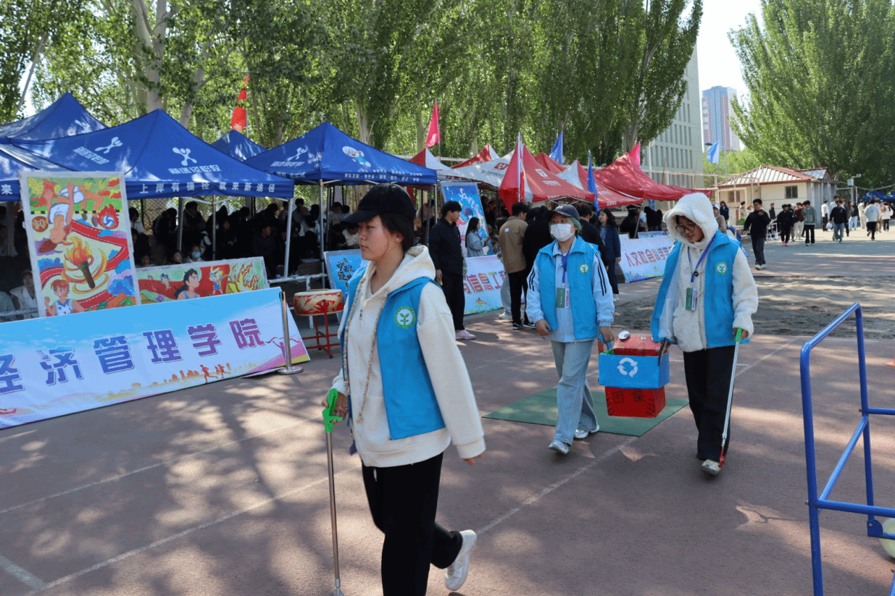 马甲,一手拿着垃圾箱,一手拿着夹子,仔细清理垃圾。他们以高度的责任心,确保整个赛事期间场地环境的干净有序,不放过一片纸屑、一个空瓶,为运动会创造了良好的卫生环境。