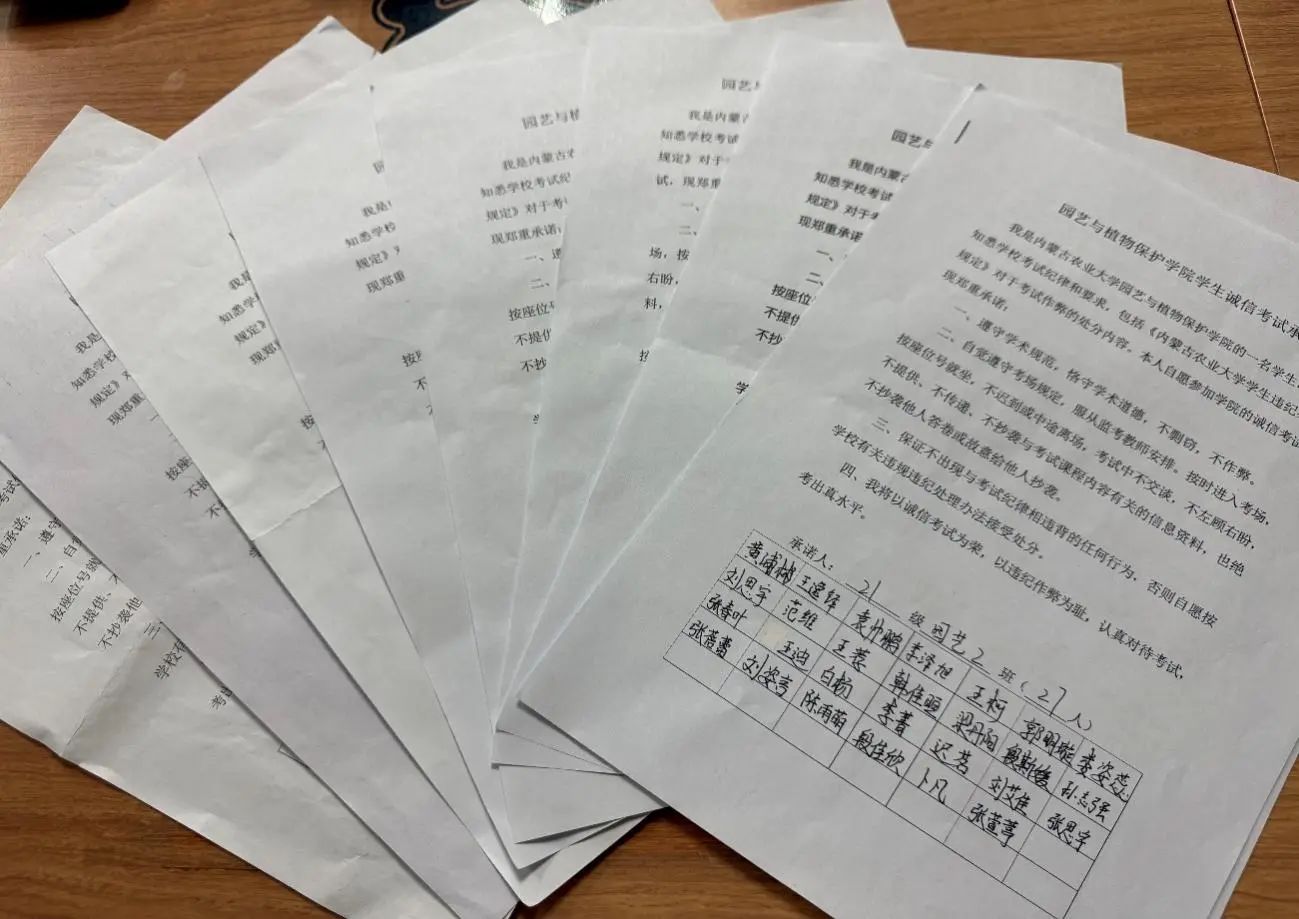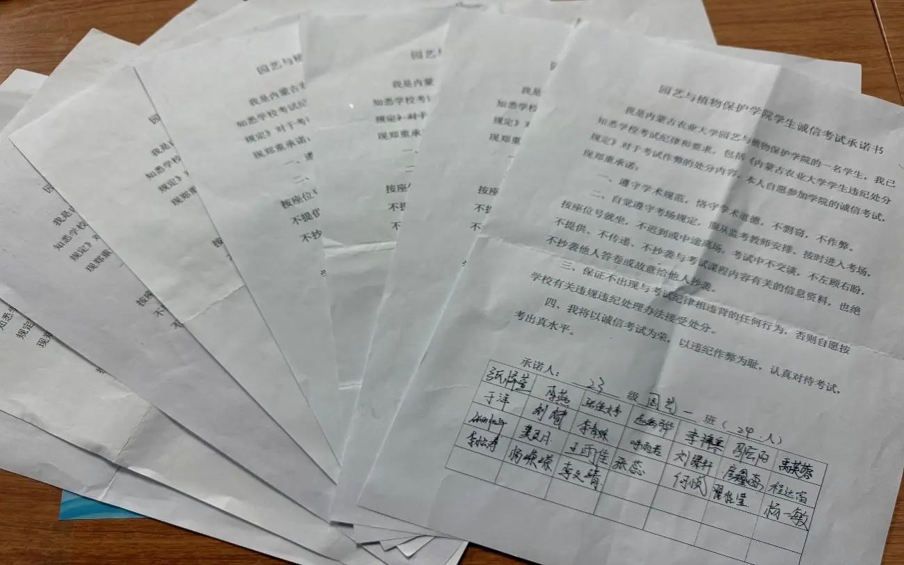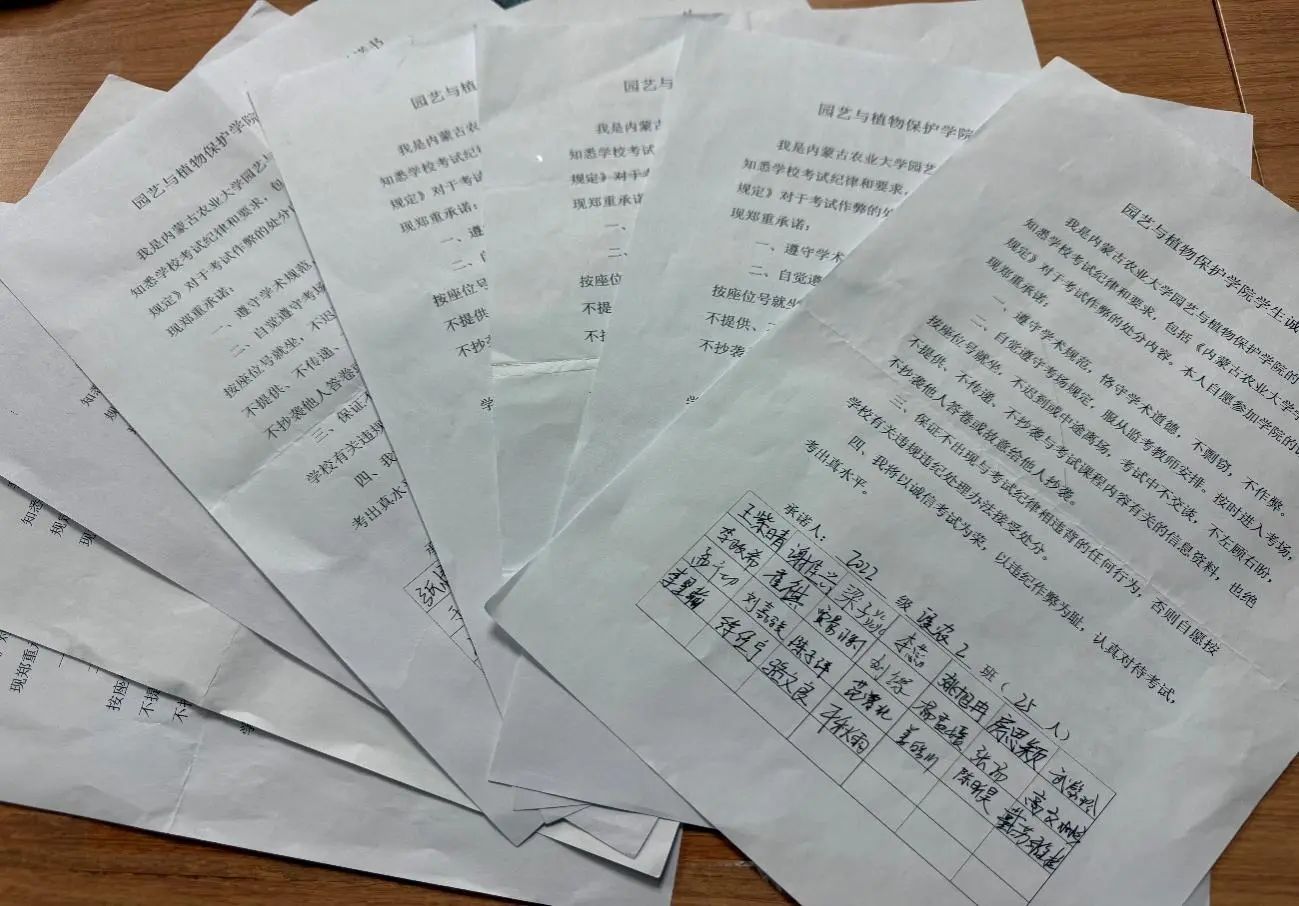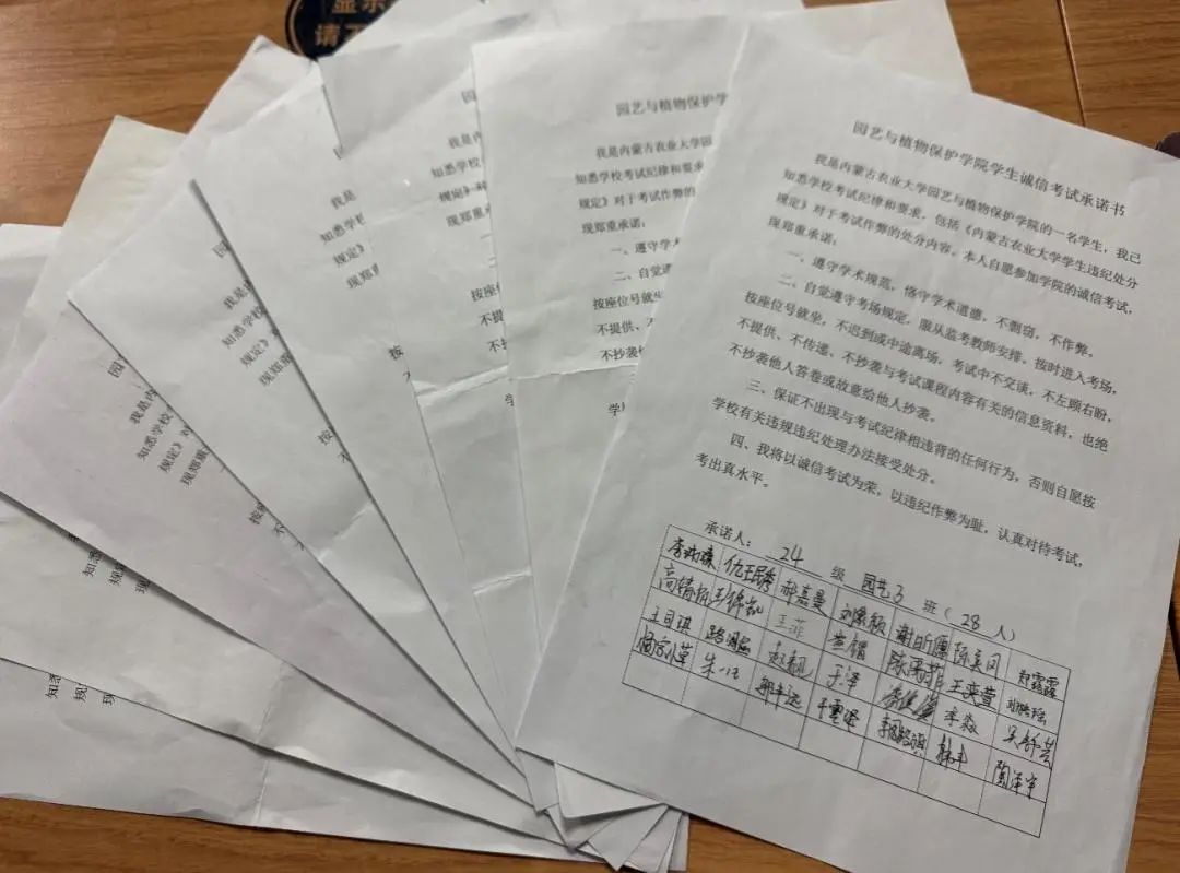 在期末考试即将来临之际向全院学生发起诚信考试的倡议,呼吁同学们“守校训,正学风,重纪律,讲诚信,遵考纪”。各班级积极签署《诚信考试承诺书》。