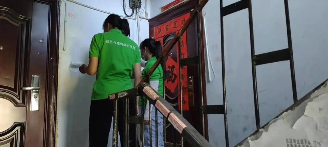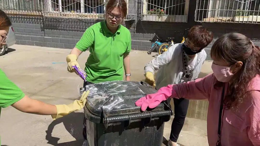 实践活动内容与前几天大致相同,并且大家都在为尽心尽力为社区服务做贡献。上午的活动中,男生到小区车棚清理杂物,将不要的东西扔掉,将车棚里自行车等摆放整齐。女生一部分留在社区服务中心继续为居民录入身份信息,一部分随工作人员继续清理和涂抹居民楼里的不规范张贴广告,改善小区居住环境。