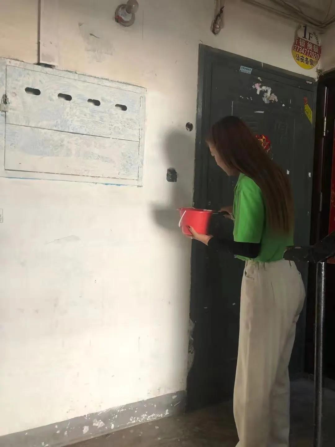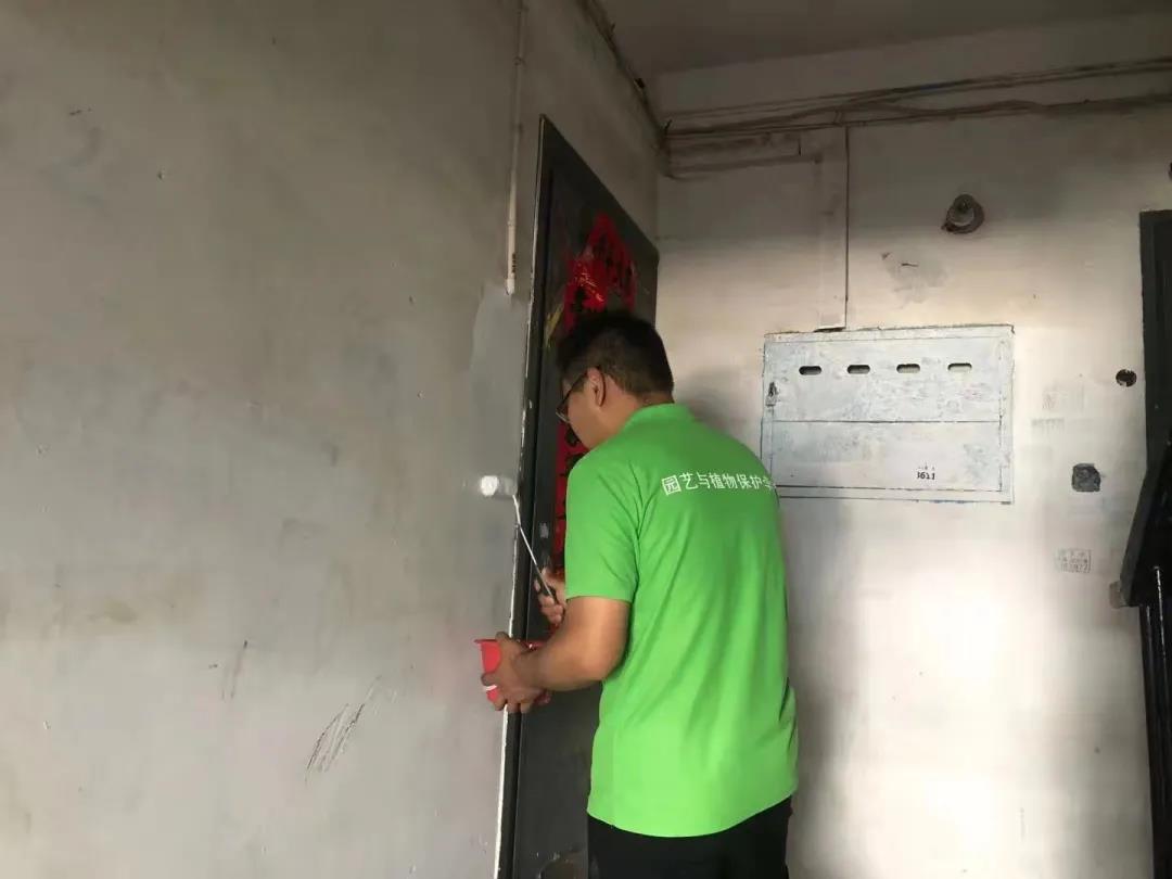 王硕,徐磊,崔代荣同学也没闲着,用喷漆装扮这小区美丽的楼道。