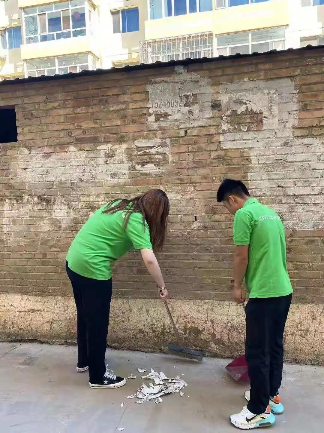 王艺洁,梁雯柳,邓全才同学前往金富小区,在工作人员的指导下,与不文明行为做斗争,在他们三人的努力下,小区的广告基本清理干净。
