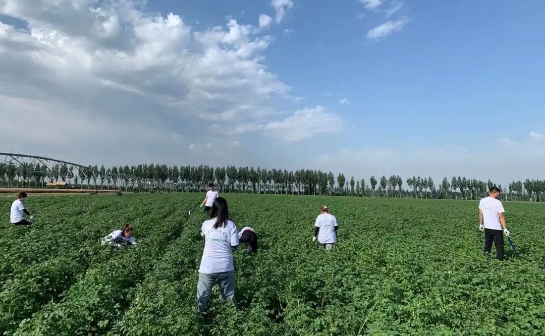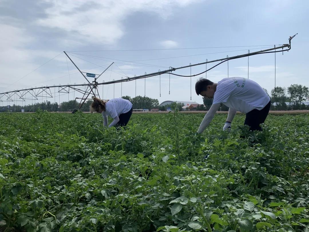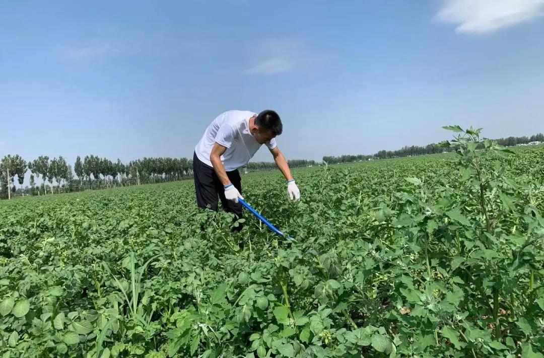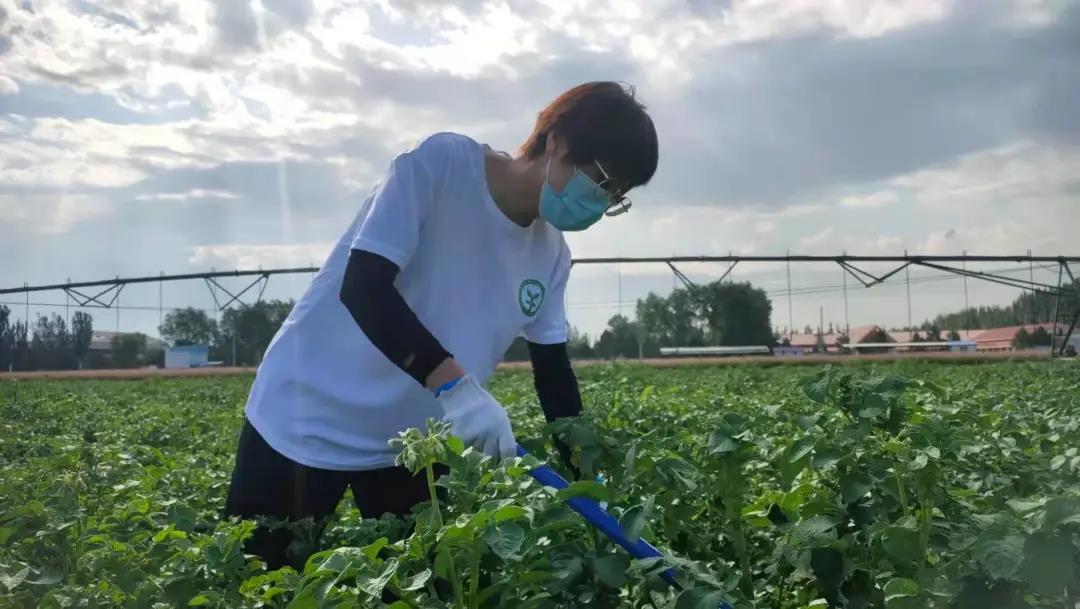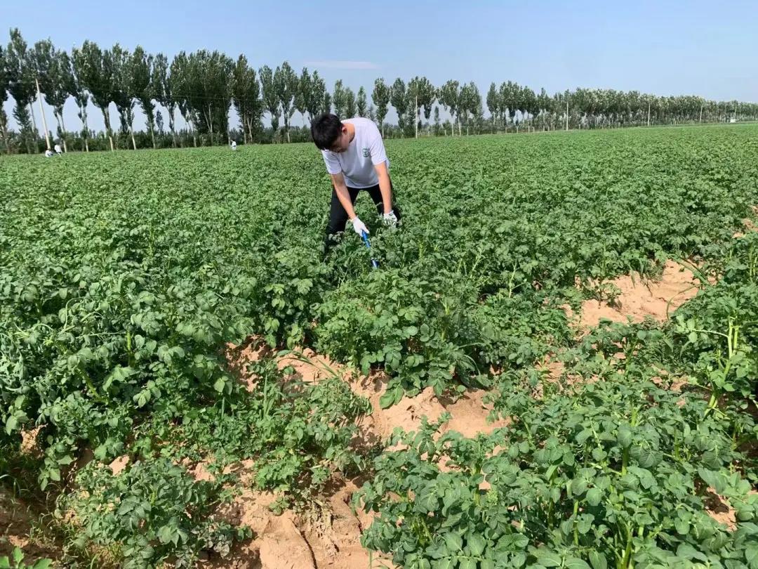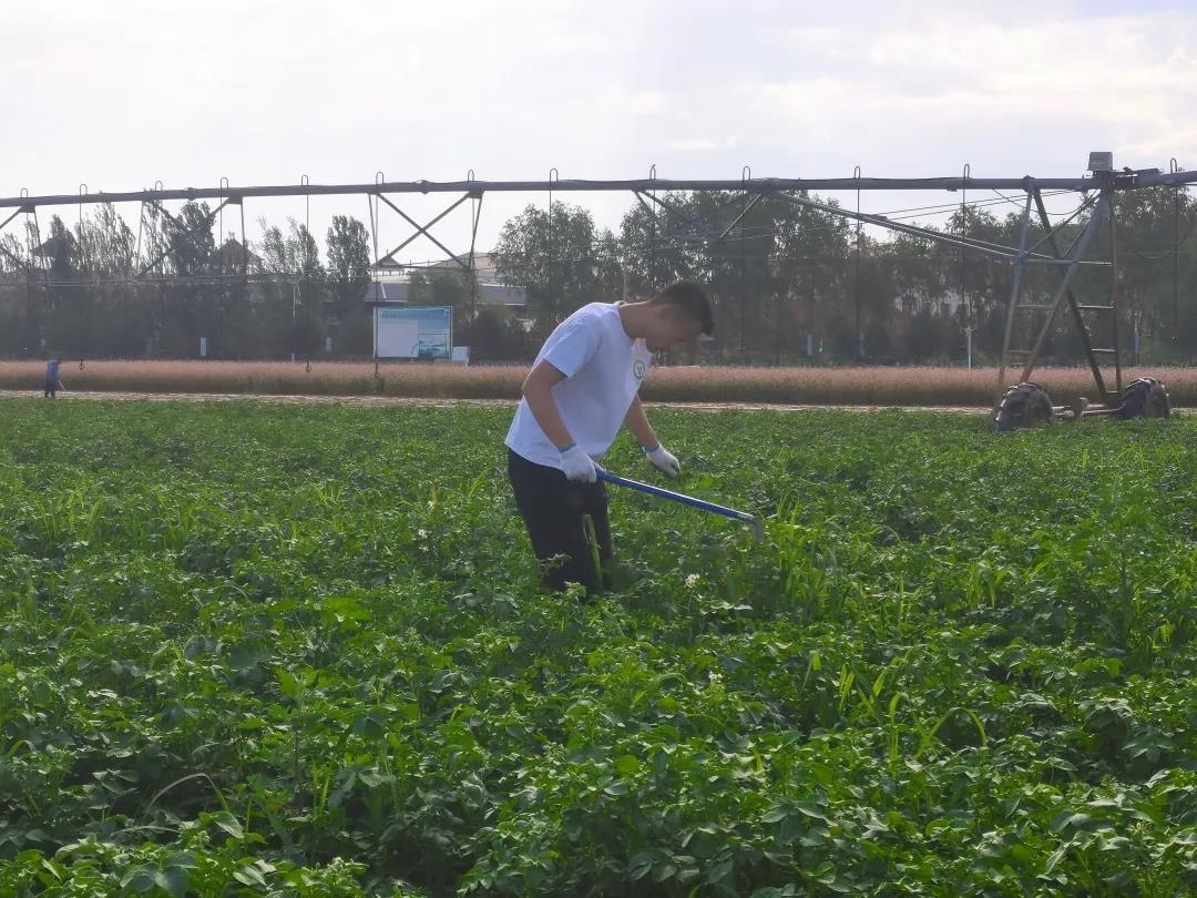 周洪友教授的土豆田里割灰菜。据狄老师讲到:灰菜生长在土豆地里会吸收地里的养分,影响土豆的生长,在马铃薯生长季适时进行中耕除草,能够斩断草根,有效地防除田间萌发的杂草。