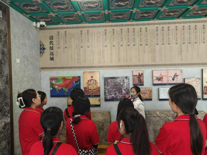 将军衙署陈列的官府文书、将军大印等文物古迹都勾勒了绥远城的历史,将军府里的一砖一木、一亭一树同时也见证了呼和浩特这座城市的沧桑历史,再现了封疆大吏“漠南第一府”的雄姿烟云。随后队员们走进了走西口文化展厅,走西口是中国近代以来一次规模较大的人口迁徙活动,从经济、农业、文化、风俗、乐曲等方面促进了各民族广泛交流交往交融,加强了民族团结和民族进步。