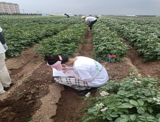 “富农强农”实践队在指导老师郝凤英的带领下走进燕麦和马铃薯种植基地开展田间除草、样本拍照实践活动。