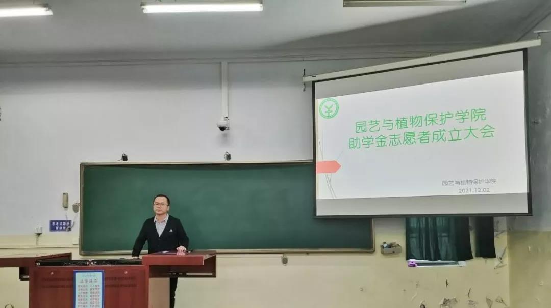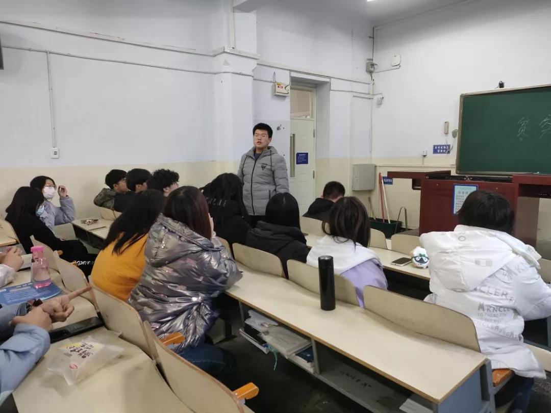 于东主106教室召开国家助学金志愿者成立大会。学生工作办公室尚飞老师主持会议,社服部主席苏志超,部长张煜、王玺媛及2021级获得国家助学金的同学们参加本次会议。