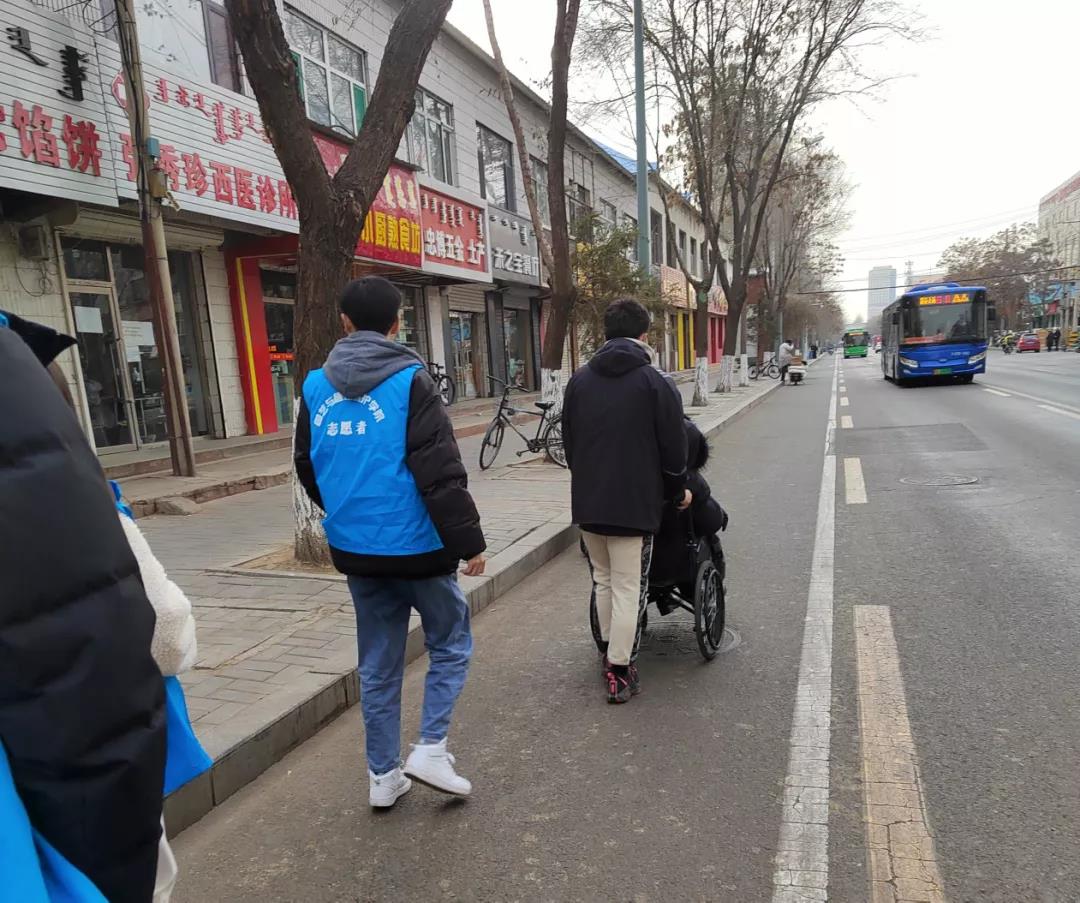 志愿者们协力帮助叶大姐打扫房间后,大家一起推着轮椅和叶大姐去超市购买生活必需品。一路上,她耐心的为不熟悉城市的同学介绍各处。大家一路欢笑,其乐融融。