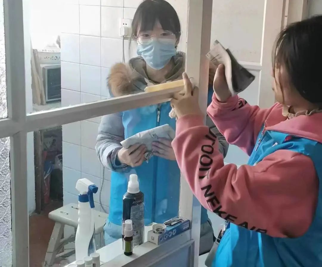 志愿者身穿马甲,探访贫困老人家庭,他们拿着抹布、扫帚等清洁工具,帮贫困家庭老人打扫客厅、厨房、卫生间等卫生死角,收拾零散物品,擦拭门窗。经过志愿者仔细打扫,老人家中焕然一新,窗明几净。在打扫过程中,志愿者与老人深入谈心、交流,询问身体近况并嘱咐老人要注意饮食起居,使他们感受到社区大家庭的温暖。