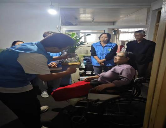 志愿者们带着提前准备好的牛奶和水果来到叶大姐家,叶大姐热情与志愿者相互交流。经过一个假期,叶大姐腿部情况不太乐观,情绪也不太好,但看到志愿者们热情洋溢、充满活力的面庞,叶大姐心情好了很多。随后,大家帮助叶大姐收拾秋冬衣服,更换床褥被罩,打扫房间等,现场氛围轻松活跃。