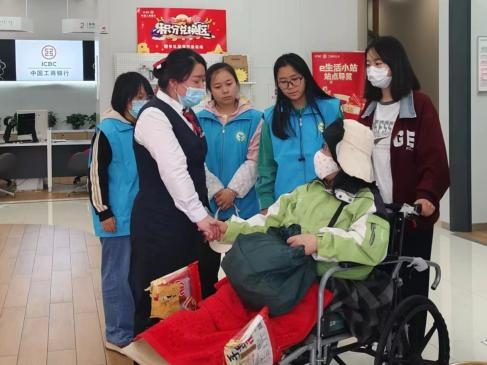 到达银行后工作人员也对叶大姐关怀备至,业务办理得十分顺利,工作人员还给叶大姐送了一些小礼物以表心意。返程路上,志愿者们陪同叶大姐去药店购买所需药品和近期想要阅读的书籍,大家一路上聊天交流,气氛十分欢快。