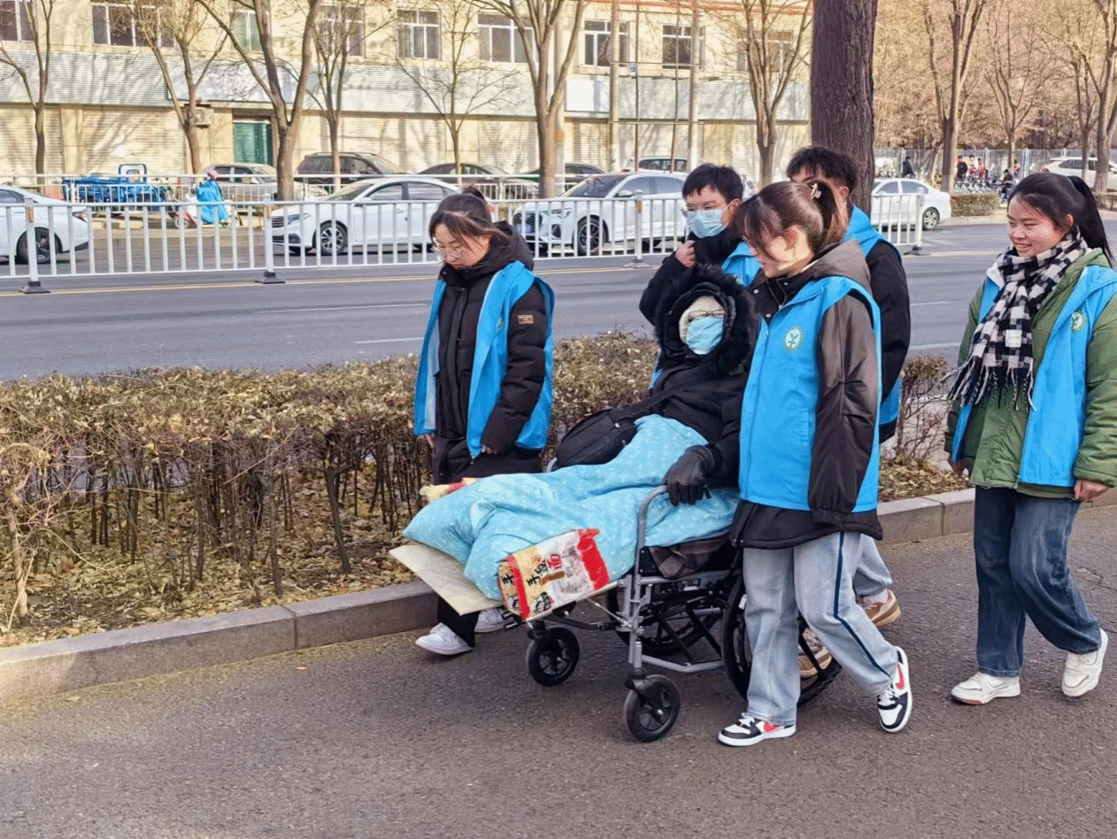 叶大姐看外面阳光正好,想要去买些药,待叶大姐穿好衣服后,志愿者们陪同叶大姐前往药店。志愿者一路上与叶大姐热情交流,排乏解闷。叶大姐也对同学们嘘寒问暖,让原本枯燥与乏味的路途变得富有趣味。