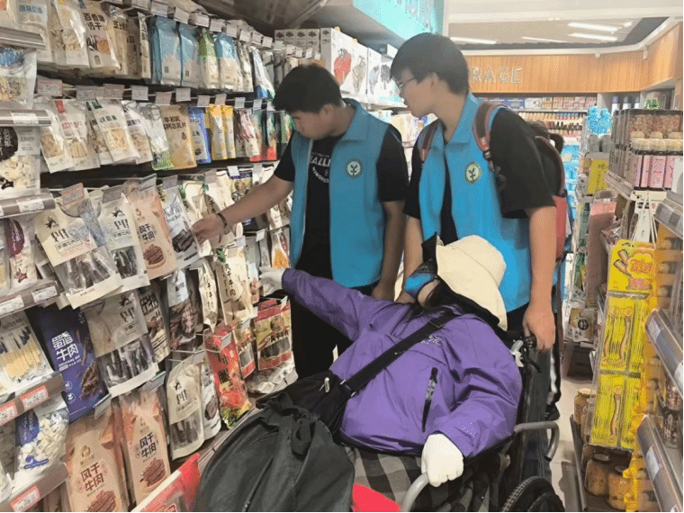在负责人提前了解到叶大姐的基本诉求后,大家来到叶大姐家,陪同叶大姐前往银行办理业务,去往超市购置生活用品,一路上志愿者与叶大姐有说有笑,气氛欢快。叶大姐平时行动不便,学院开展的志愿帮扶活动为她的生活提供了更多的便利。