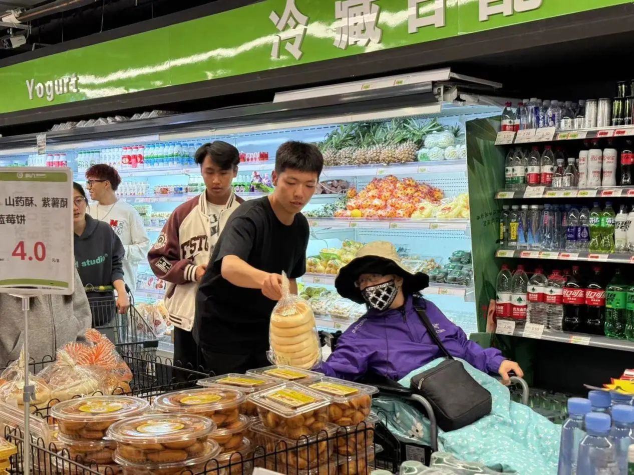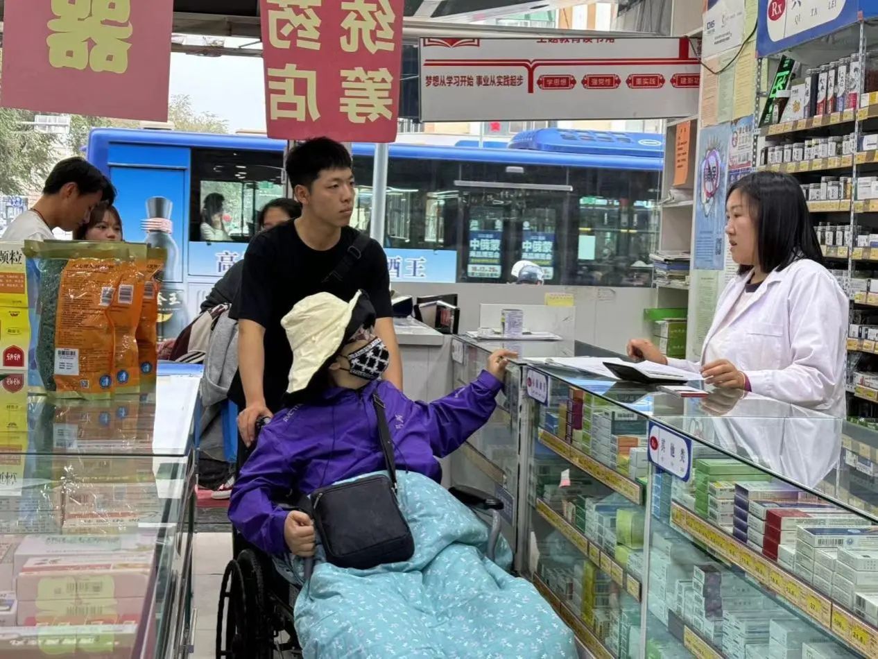在返回途中,同学们又陪同叶大姐去药店购置药品,逛超市购买了生活用品和蔬果。