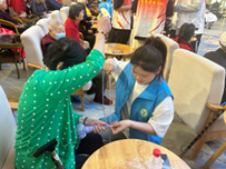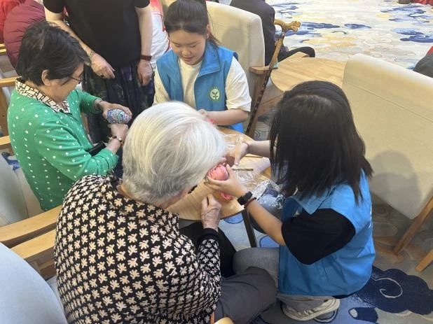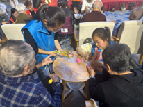 互动环节更是将现场氛围推向高潮,志愿者们为老人穿针引线,大家共同制作“香包”、“艾草锤”等端午特色手工艺品。在温馨的氛围中,一个个精美的香包、艾草锤相继诞生。这些手工艺品不仅承载着端午安康的美好寓意,更寄托着志愿者与老人们之间浓浓的情谊。